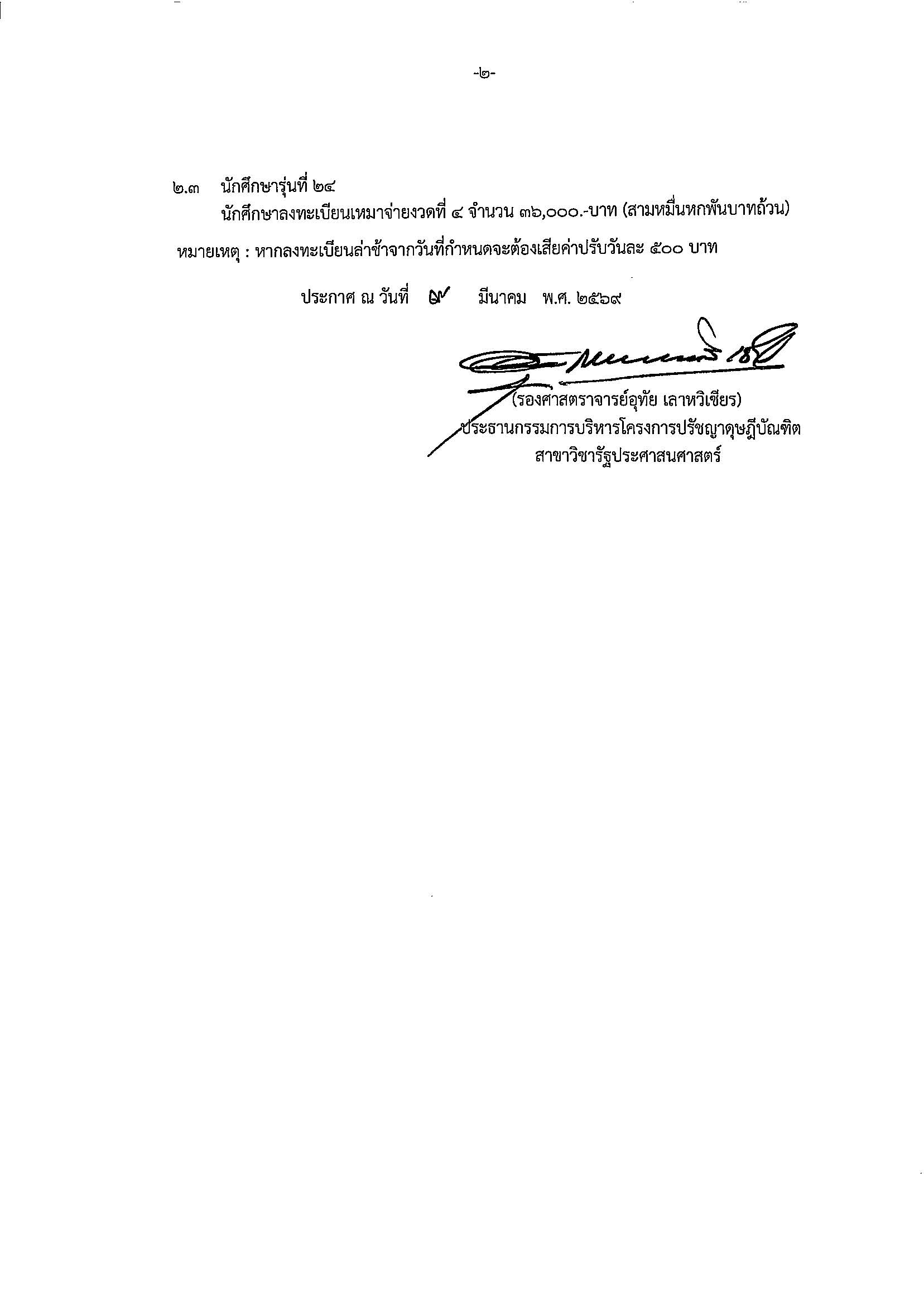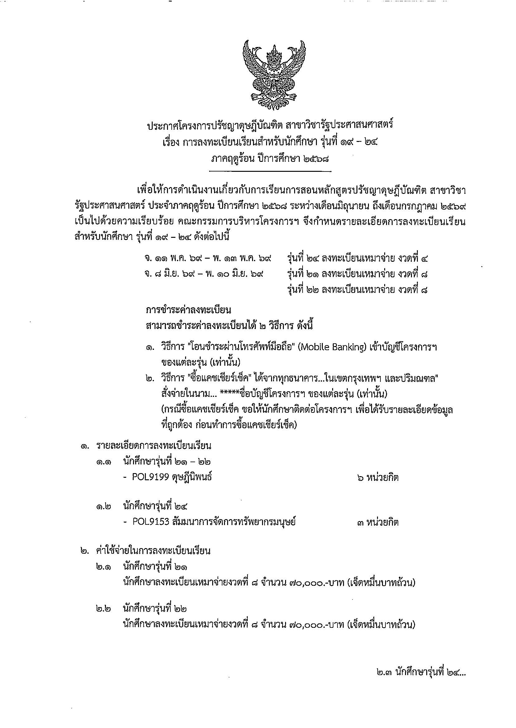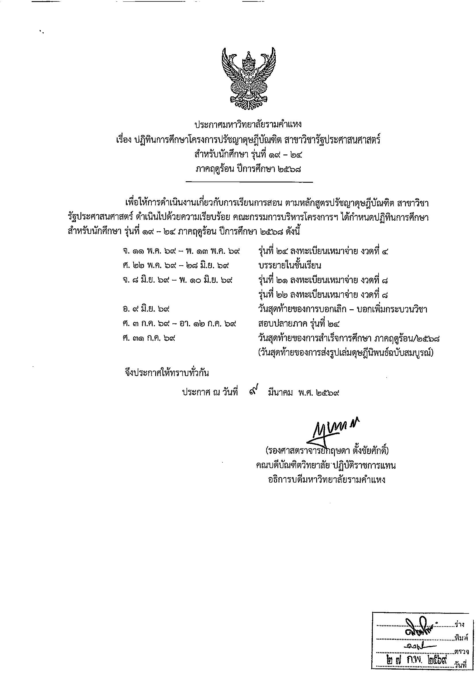 เรื่อง ปฏิทินการศึกษาโครงการปรัชญาดุษฎีบัณฑิต สาขาวิชารัฐประศาสนศาสตร์