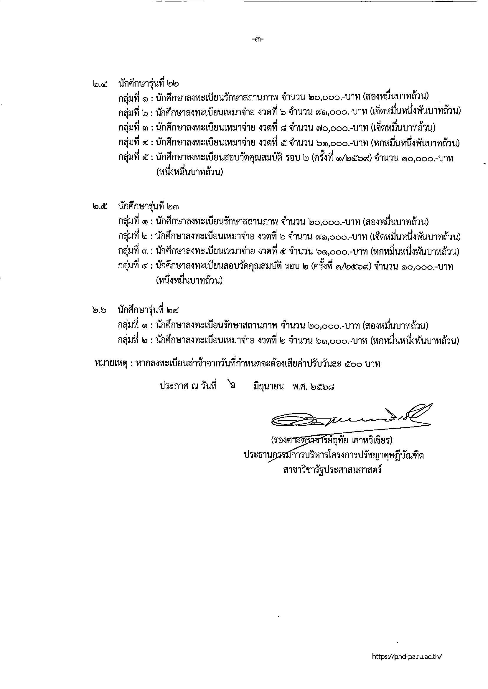 ประกาศ โครงการปรัชญาดุษฎีบัณฑิต สาขาวิชารัฐประศาสนศาสตร์