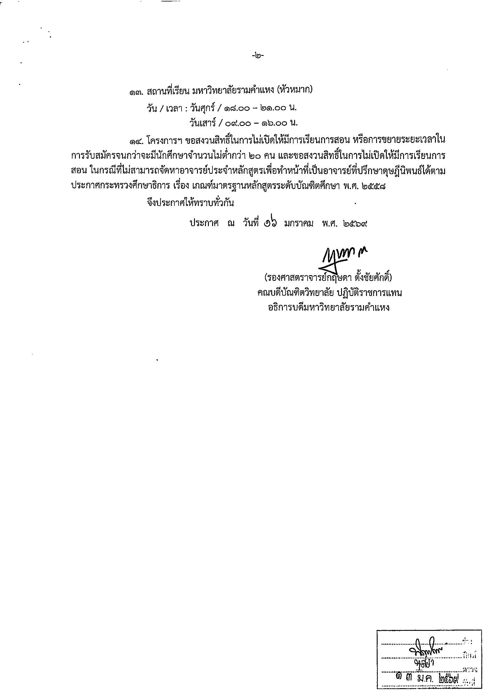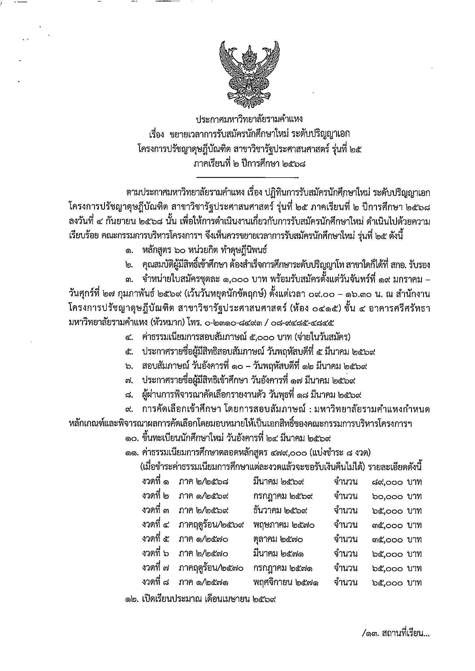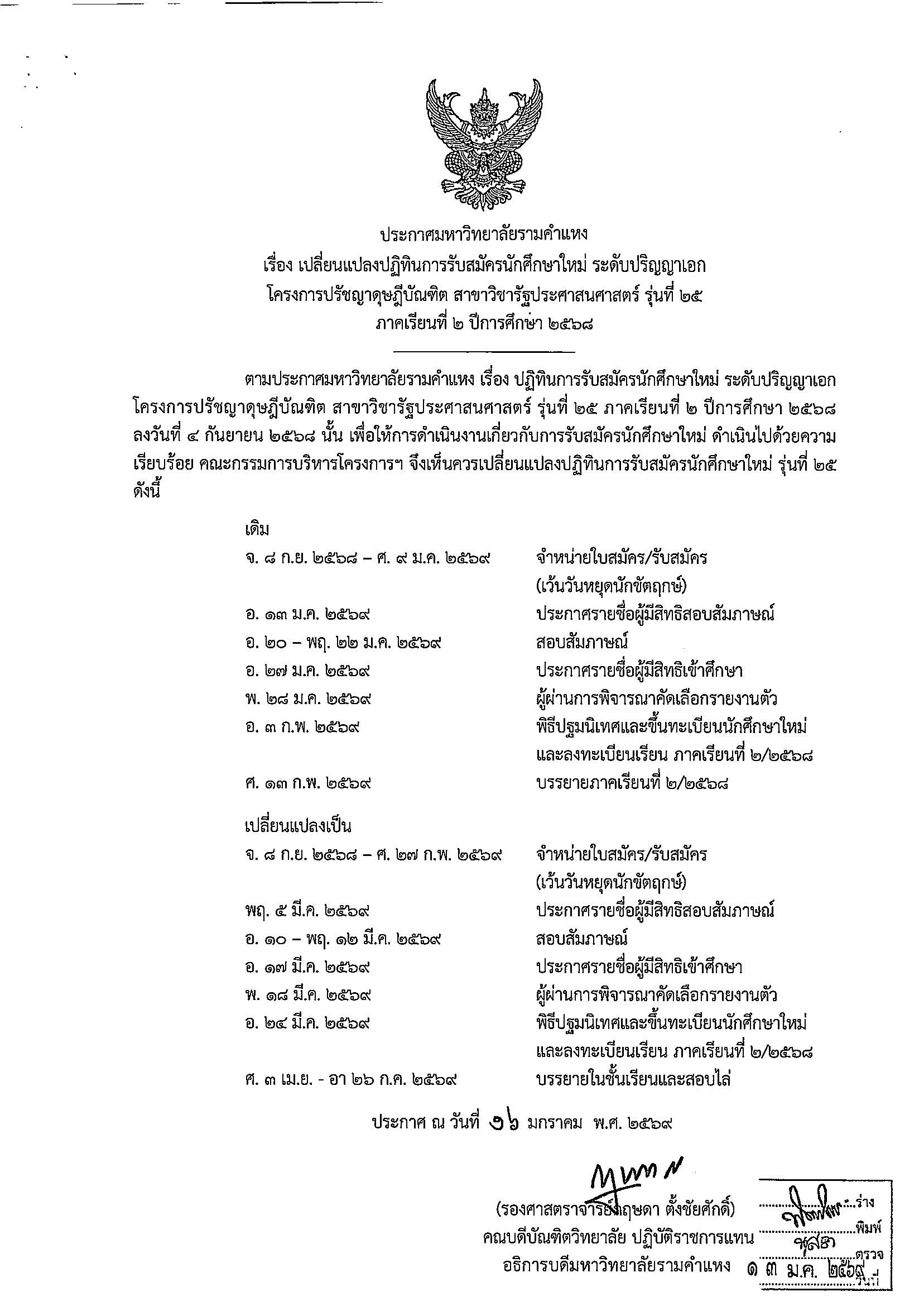 ขยายเวลารับสมัครนักศึกษาใหม่ รุ่นที่ 25 ภาคการศึกษาที่ 2 ปีการศึกษา 2568